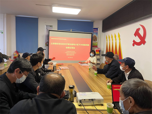 3月11日,在珍珠社區(qū)二樓會(huì)議室,郵電局黨支部正在召開關(guān)于解決小區(qū)下水堵塞問題的協(xié)商議事會(huì),會(huì)上小區(qū)黨組織、黨員和居民代表、物業(yè)企業(yè)正在就如何解決下水堵塞問題進(jìn)行熱火朝天的討論。最終會(huì)議協(xié)商決定由物業(yè)對堵塞區(qū)域進(jìn)行開挖,疏通管道,并對小區(qū)內(nèi)的管網(wǎng)進(jìn)行全面排查,小區(qū)黨組織和黨員代表全程配合監(jiān)督,解決下水堵塞難題。