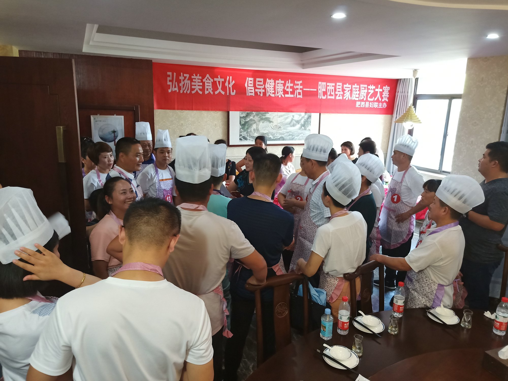 為培養(yǎng)居民的飲食情趣,豐富全縣廣大家庭成員的業(yè)余生活,助推肥西縣順利通過(guò)2019年國(guó)家慢性病綜合防控示范區(qū)國(guó)家級(jí)復(fù)審,促進(jìn)健康肥西建設(shè)。8月23日,由肥西縣婦聯(lián)主辦的家庭廚藝大賽在縣城上派拉開(kāi)帷幕,下午兩點(diǎn),大賽全體參賽人員進(jìn)行賽前集合,各鄉(xiāng)鎮(zhèn)園區(qū)婦聯(lián)也前來(lái)為大家鼓舞士氣。各具特色的家庭展示引燃了全場(chǎng)的氣氛,自信的口號(hào)、特色的團(tuán)隊(duì)、霸氣而富有寓意的菜名都無(wú)不顯示著參賽選手們必勝的決心。