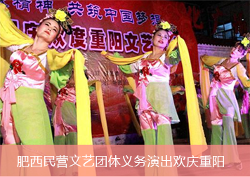 豐樂文廣站的文藝工作者們?yōu)槔先藗兯腿ゾ实奈乃嚬?jié)目及重陽佳節(jié)的祝福與問候。整場演出表演了黃梅戲《夫妻雙雙把家還》、京劇《智斗》、廬劇《十八里相送》、歌劇《白毛女選段》、樂器演奏《敖包相會(huì)》和《別亦難》及舞蹈《洪湖水浪打浪》等十五個(gè)精彩節(jié)目。【詳細(xì)】
